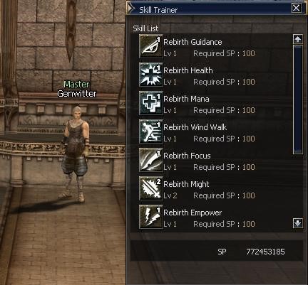 To learn a rebirth skill, visit a Skill Trainer, which can be found in most towns.